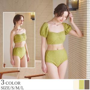 水着 リップル素材トップス付ビキニ/水着 レディース