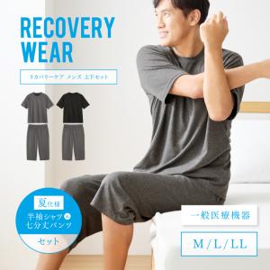 【一般医療機器】リカバリーウェア 上下セット メンズ 半袖シャツ+七分丈パンツ 春夏用 パジャマ 夏物 ルームウェア 腰 遠赤外線 敬老の日 父の日 プレゼント