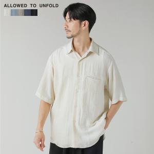 シャツ トップス メンズ カジュアル 夏 夏服 リネン 麻 レーヨン ナイロン 軽量 羽織り レギュラーカラー 半袖 スナップボタン ナチュラル ALLOWED TO UNFOLD