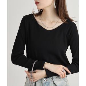 tシャツ 2×2リブVネックカットソー レディース