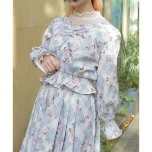 ブラウス シャツ チェック×フラワー柄ブラウス レディース