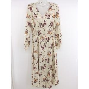 ◇ fifth フィフス 花柄 長袖 ロング カーディガン サイズM ベージュ ワインレッド マルチ レディース