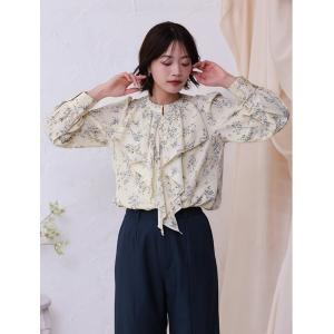 ブラウス シャツ 「cho____07セレクト」 フラワープリントパールフリルブラウス レディース