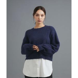 ニット セーター レイヤード風スパンコールラメニット レディース