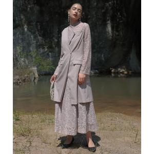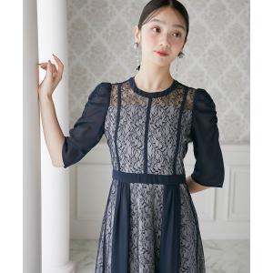 ドレス 「Callarus」スタンドカラージャケットドッキングデザインレースロング丈ワンピースドレス