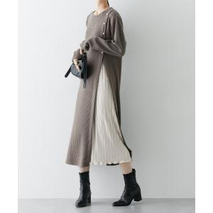 ワンピース ふんわりリブニットソープリーツ切替ワンピース