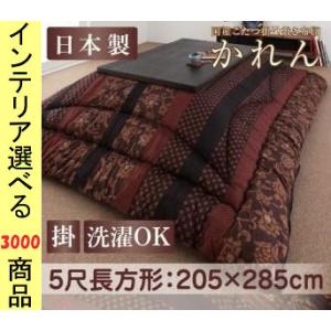 こたつ布団 掛布団 205×285cm 綿 隙間対策加工 花柄 日本製 柿渋・濃藍色 YC840701829