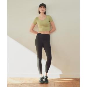 tシャツ ラインデザイン半袖ヨガウェアセットアップ レディース