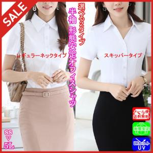 シャツ ブラウス 半袖 Vネック オフィス ホワイト ブラック OL 制服 事務服 就活