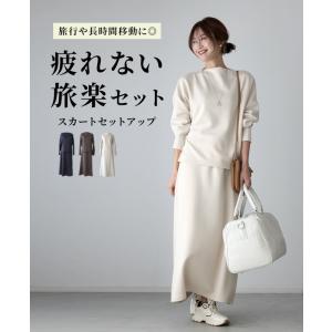 セットアップ ポンチ スカートセット ウエストゴム 半袖 長袖 お出かけ ボートネック 体型カバー ストレッチ