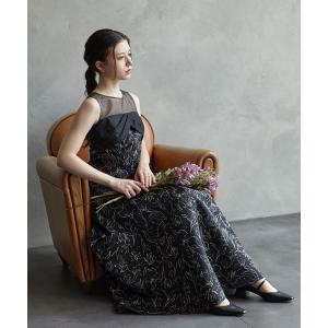 ドレス フラワ―刺繍レイヤードハイウエストIラインパーティードレス 結婚式 お呼ばれ ドレス 20代 30代 40代
