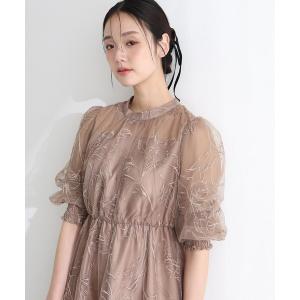 ドレス 「低身長用サイズあり」オーガンジーパフスリーブ刺繍レースドレス 結婚式 同窓会 お呼ばれワンピース