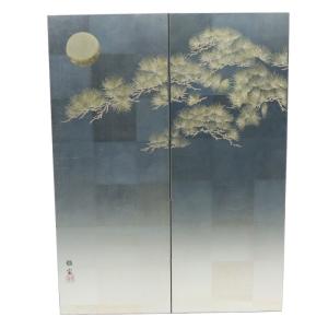 アウトレット品 屏風単品 二曲屏風 4尺 古代銀 月に松 レトロ アートスタンド 26a-ya-0896