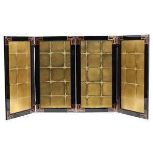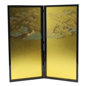 アウトレット品 屏風単品 二曲一双大将屏風 23号 ゴールド 黒枠 レトロ アートスタンド 26a-ya-0989