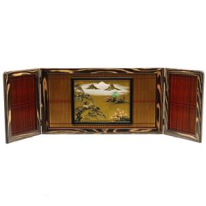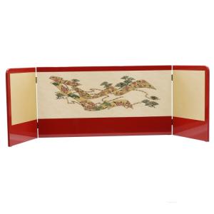 アウトレット品 屏風単品 三曲屏風 15号 ゴールド エンジ格子・松竹梅 レトロ アートスタンド 26a-ya-0948