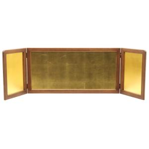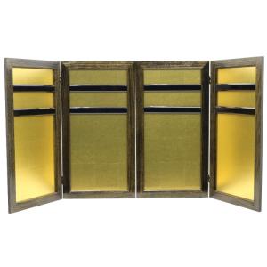 アウトレット品 屏風単品 三曲金屏風 13号 ゴールド 焦げ茶木目枠 レトロ アートスタンド 26a-ya-0943