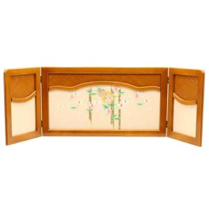 アウトレット品 屏風単品 三曲屏風 15号 ケヤキ色 竹と桜 レトロ アートスタンド 26a-ya-0944