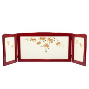 アウトレット品 屏風単品 三曲屏風 15号 ゴールド エンジ格子・松竹梅 レトロ アートスタンド 26a-ya-0947