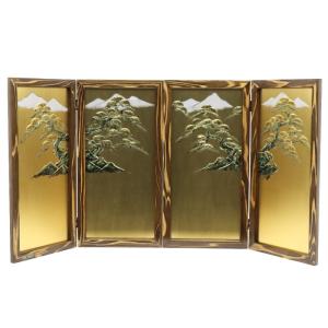 アウトレット品 屏風単品 二曲一双屏風 25号 ゴールド 盛上松 レトロ アートスタンド 26a-ya-1002