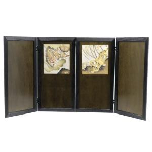 アウトレット品 屏風単品 二曲一双屏風 23号 焦げ茶 龍虎 レトロ アートスタンド 26a-ya-0994