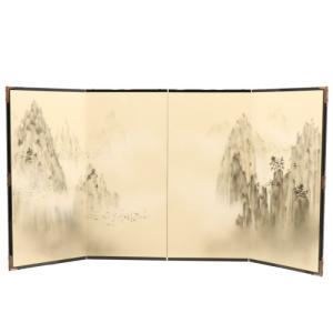 アウトレット品 屏風単品 四曲屏風 25号 アイボリー 手描き山水 レトロ アートスタンド 26a-ya-0997