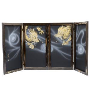 アウトレット品 屏風単品 二曲一双屏風 25号 ブラック 手描き龍 レトロ アートスタンド 26a-ya-1001