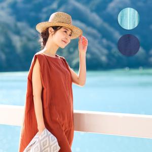 ワンピース ひざ丈ワンピース 膝丈 レディース リネンワンピ 森ガール風 パフスリーブ ゆったり 前開き ラウンドネック 無地 着痩せ おしゃれ 20代 30代 秋