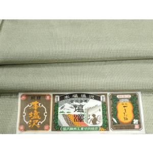 お召 身丈151cm 裄丈66cm M 単衣 本塩沢 やまだ織 証紙あり 縦縞 薄緑 正絹 逸品 中古