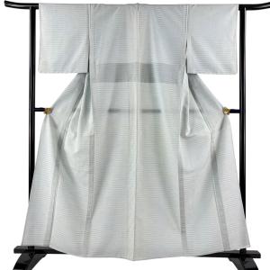 お召 身丈160cm 裄丈61.5cm S 薄物 本塩沢 やまだ織 証紙あり 縞 水色 正絹 逸品 中古