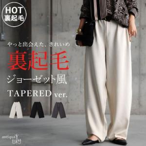 裏起毛 ジョーゼット風 パンツ レディース ロング 送料無料・メール便不可