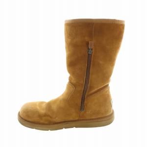 アグ オーストラリア UGG australia ムートンブーツ ショート ロゴ ジップアップ スエード US8 25cm 茶 ブラウン