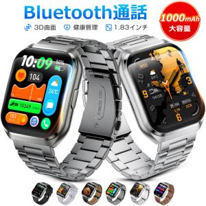 スマートウォッチ メンズ Bluetooth通話 1.83インチ 3D曲面 血中酸素 歩数 健康管理 スマートブレスレット 着信通知 IP68防水 1000mAh大容量バッテリー QS26