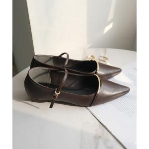 パンプス ゴールドバー オーバルヒール ポインテッドトゥパンプス