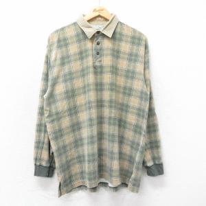 L/古着 アメリカンイーグル 長袖 ブランド ポロ シャツ メンズ 90s 襟コーデュロイ コットン ベージュ他 カーキ チェック 25