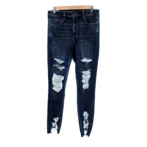 アメリカンイーグルアウトフィッターズ AMERICAN EAGLE OUTFITTERS デニムパンツ ジーンズ スキニー ダメージ加工 42 紺 レディース