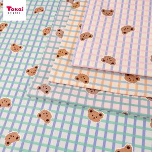 プディング くまチェック オックス 1m カットクロス | 生地 布 布地 はぎれ カット布 ベア チェック カラフル 通園 通学 コットン100% アンニョン 韓国テイスト