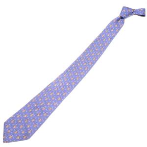 HERMES エルメス 総柄 ウサギ シルク ネクタイ ブルー/ベージュ