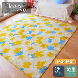 ラグ マット 絨毯 約180×180 2畳 フランネル 軽量 洗える ウォッシャブル 花 フラワー エレガンス カーペット 床暖房対応