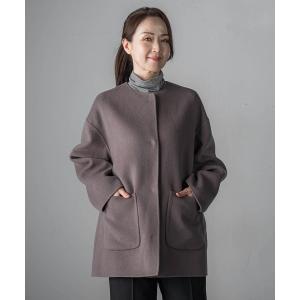 ノーカラーコート コート 「極」”軽さと贅沢なぬくもり”ノーカラーリバーコート レディース