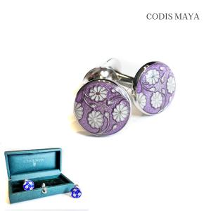 カフスボタン ブランド CODIS MAYA カフス カフリンクス 花柄<br>真鍮 イギリス製 ライラック 薄紫 ブルー 青