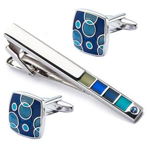 ネクタイピン カフスボタン セット スクエア 水玉 ドット アクア ブルー 四角 カフリンクス