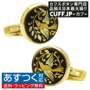 カフスボタン スペイン象嵌 鳥 ゴールド カフス カフリンクス メンズアクセサリー