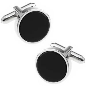 ラウンド オニキス カフス カフスボタン カフリンクス (ケース入り) ブラック