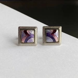羽【アメジスト】七宝焼きのカフスボタン カフリンクス 純銀胎有線七宝