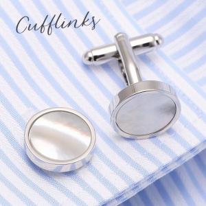 カフスボタン カフスリンクス メンズ アクセサリー スーツ シェル風 サークス 丸 ラウンド シルバーカラー ホワイト 白 パーティ ベーシック 定番