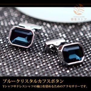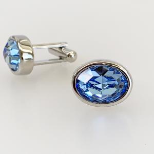 カフスボタン カフリンクス フォーマル メンズ オーバル ブルー スワロフスキー AC01-814-BLUE