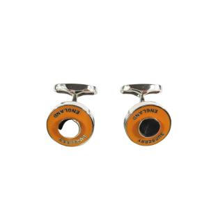 未使用 BURBERRY バーバリー カフス ボタン カフリンクス 丸型 ロゴ スーツアクセサリー オレンジ シルバー メンズ 古着 中古