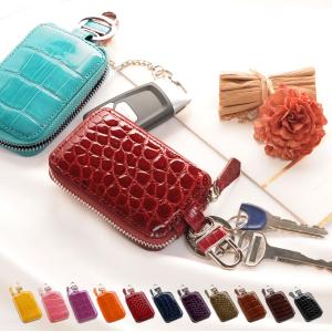 クロコダイルスマートキーケース カバー シャイニング 加工 レディース 全20色 ワニ革 女性 プレゼント(06001009r)