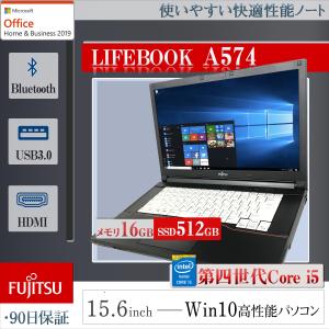 ノートパソコン 中古パソコン Microsoft Office2019 第四世代CORE i5 大画面15型 新品SSD512GB メモリ16GB DVD/Bluetooth搭載 コスパ重視 国産メーカー 富士通PC