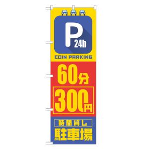 のぼり旗 24時間 コインパーキング 60分 300円 のぼり 四方三巻縫製 S19-0164B